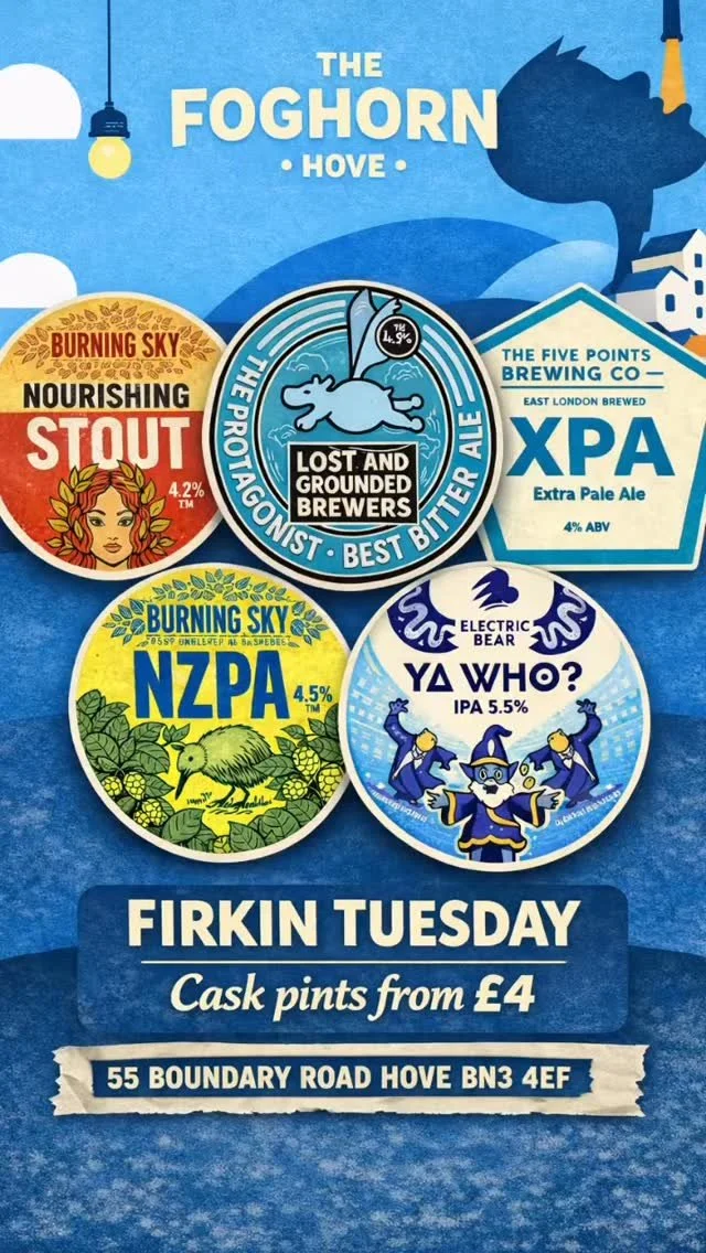 Hi! We are Tommy, Niall and Tim and we opened The Foghorn in December 2018 on Boundary Road, Hove. Born out of a shared love of great beer and great pubs, our aim from the beginning was to create a friendly, welcoming micropub with the emphasis on craft beer and community.